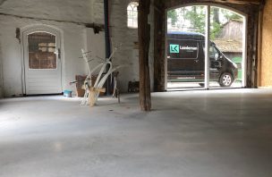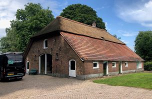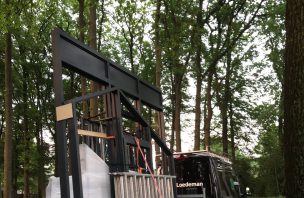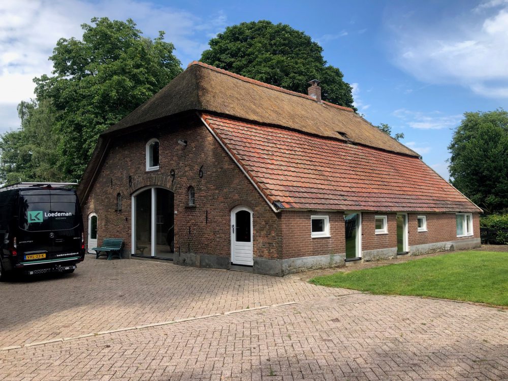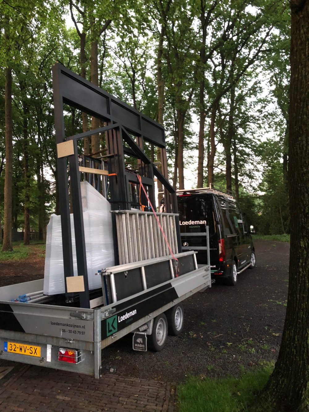 Levering en montage houten poort met eiken kozijnen en grenen deur