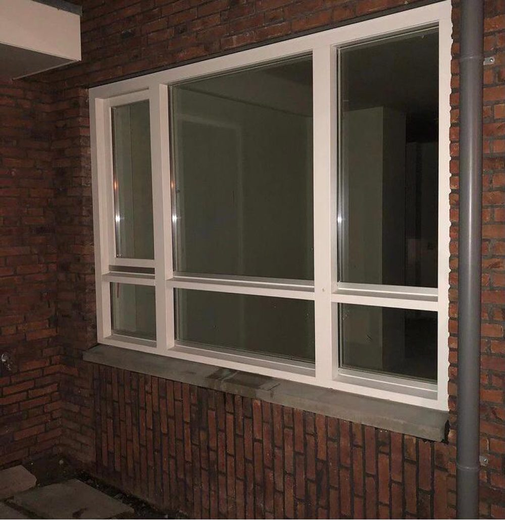 Volledige gevel voorzien van kozijn met triple glas