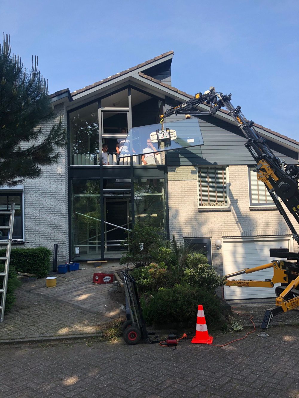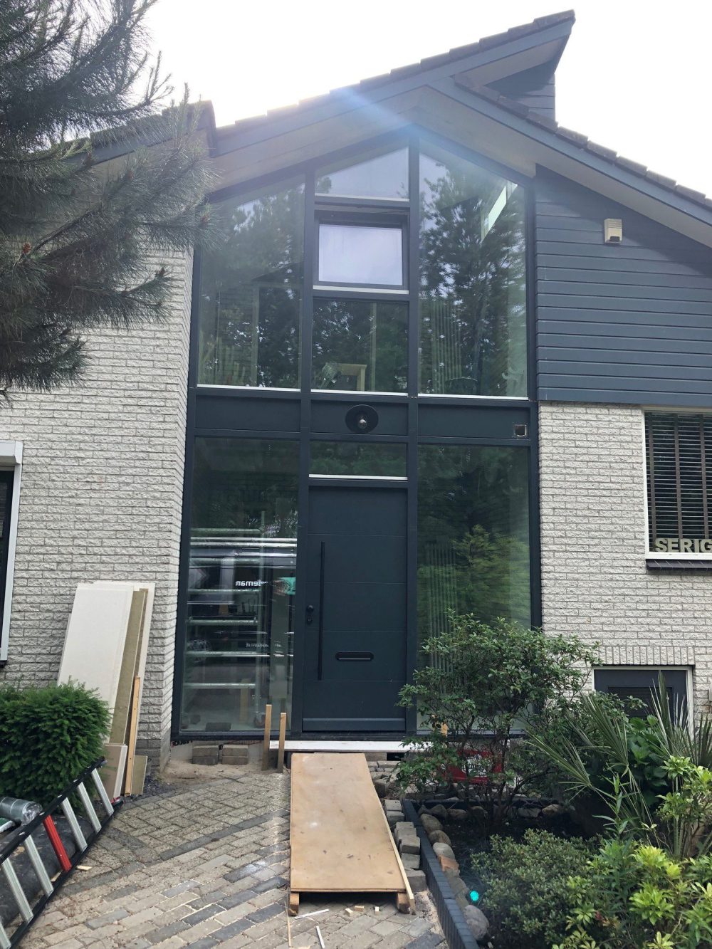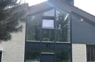 Volledige gevel voorzien van kozijn met triple glas